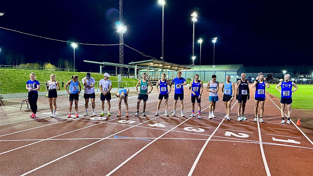För andra gången i ordningen så arrangerades Banmilen, som går ut på precis det som namnet antyder, att springa 10 000m på bana. 15 löpare, 12 män och 3 kvinnor, hade antagit den fysiska och mentala utmaning, som det innebär att springa 25 varv på bana så snabbt som möjligt. Det finns ju en anledning till 10 000m i vissa löparkretsar går under epitetet ”25-varvsfrossa”.